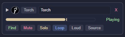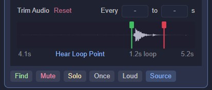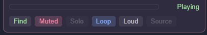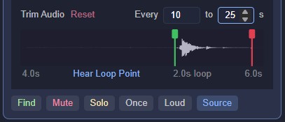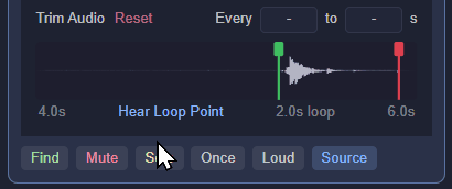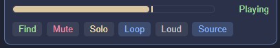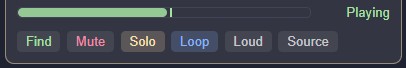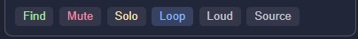 - Find, Mute, Solo, Loop/Once, Loud, and Source buttons