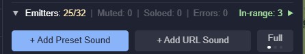 Beyond the bundled library, you can use audio from the BBC Sound Effects catalogue (16,000+ sounds) or paste any URL to an audio file. See Adding URL Emitters (External Audio Sources) for details.