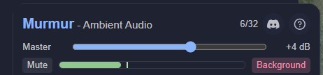 When both are active, Murmur's audio gain structure ensures that its ambient audio sits comfortably beneath Sending's voice conversation. At matching volume settings, Murmur's output is approximately 12dB quieter than Sending's voice channels - a natural background level that enhances the OBR Scene without competing with speech.