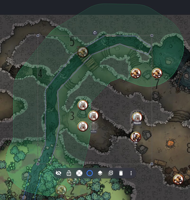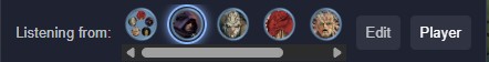 The GM can choose between any of these player-accessible listeners, effectively choosing the listening position for everyone just by clicking on one of them (and the blue 'Party' halo will confirm which is currently selected):