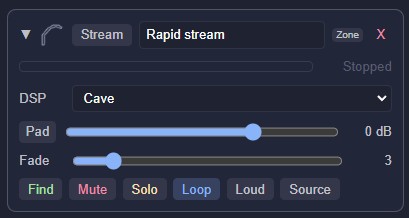 Many presets use a loop + stinger layering system: a continuous ambient bed (the "loop") with occasional one-shot sounds layered on top (the "stingers"). For example, the Birdsong preset plays a gentle outdoor ambience, with individual bird calls triggered at random intervals over the top of it. Cave Drip has a steady drip loop with occasional rockfall sounds. These stingers are randomised in timing and selection, so the soundscape never feels repetitive.
