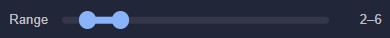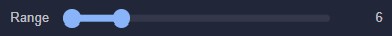 - Range slider with start and stop distances for the volume fade-out, and their numeric readout shown in grid cells